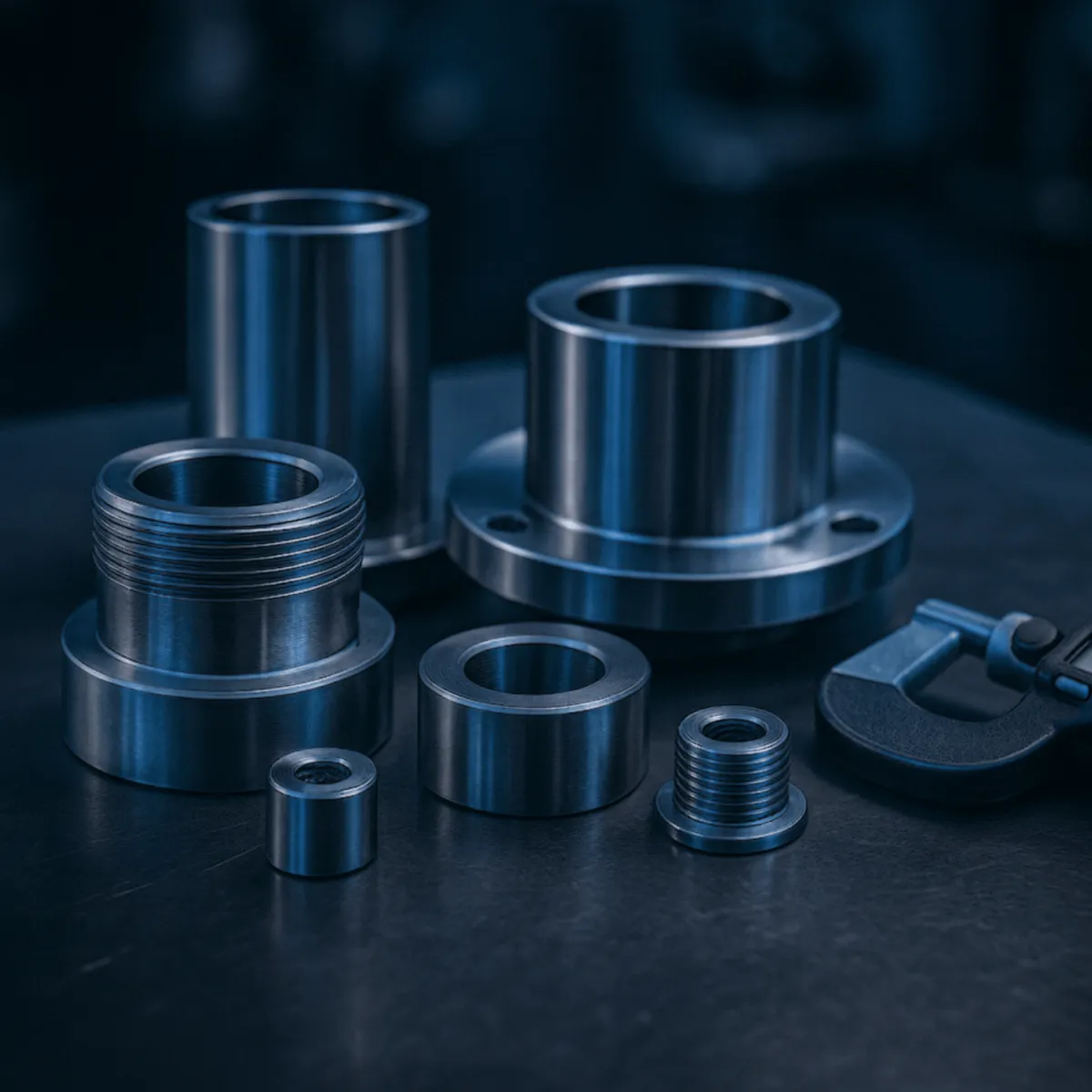 CNC-machined components and threaded elements produced to exact design specifications.